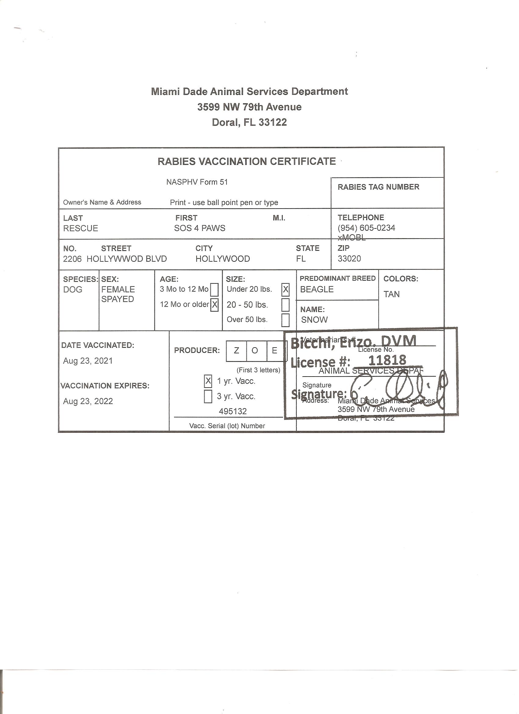 We rescued SNOW from Miami-Dade Animal Services where staff reported that, although she was very shy and fearful upon intake, she would readily take treats and took them gently. SNOW is now in a foster home with a number of other dogs. In fact, she has met about 40 dogs in the time she has been in her current foster home (since 10/26/21). She plays with many of them - including ones who are much larger than her. She is confident and friendly with other dogs and they like her.